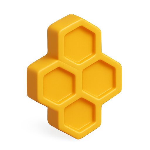 A minimalistic 3D representation of a yellow honeycomb shape, ideal for use in branding, product design, or educational materials. Its vibrant color and clean lines enhance visual appeal.