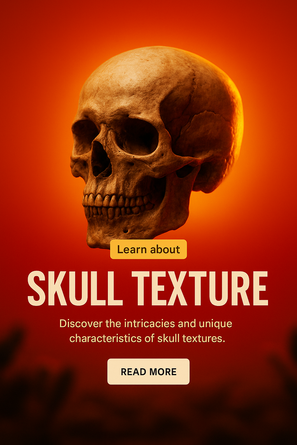 This image features a realistic skull against a vibrant background, designed as a promotional graphic. It aims to attract attention for educational content about skull textures.