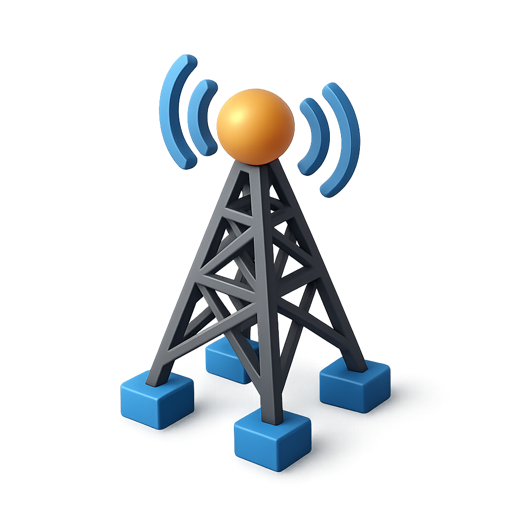 Stylized 3D Antenna Tower Icon with Isometric Design