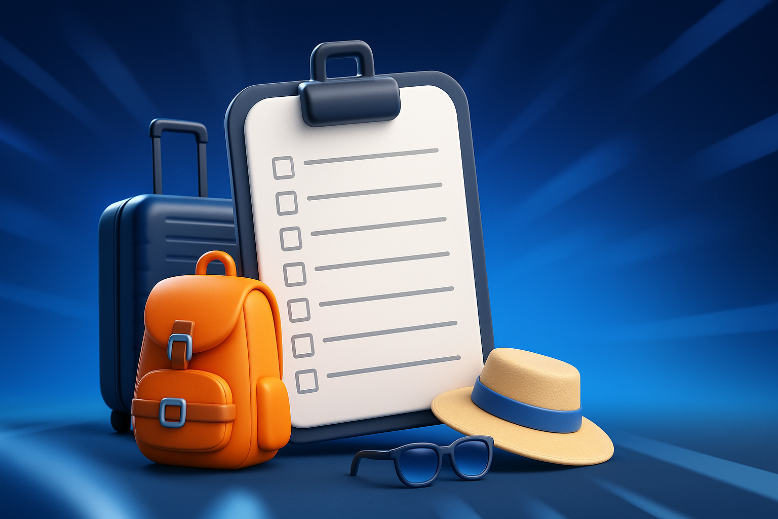 Dynamic Travel Packing List Illustration with Luggage and Accessories