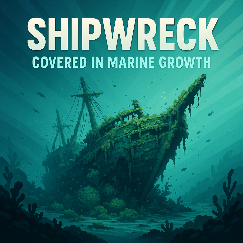 Illustration of a Shipwreck Covered in Marine Growth