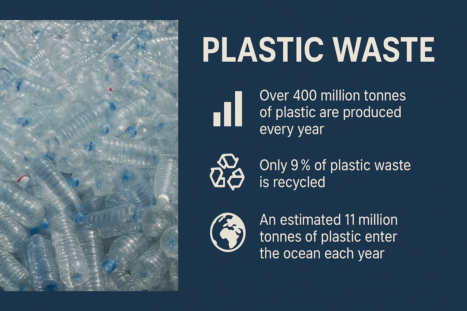 /Collection: /by davooda/Type: PNG/A compelling infographic illustrating critical statistics on plastic waste, emphasizing the environmental impact and recycling challenges. Ideal for educational and awareness campaigns.