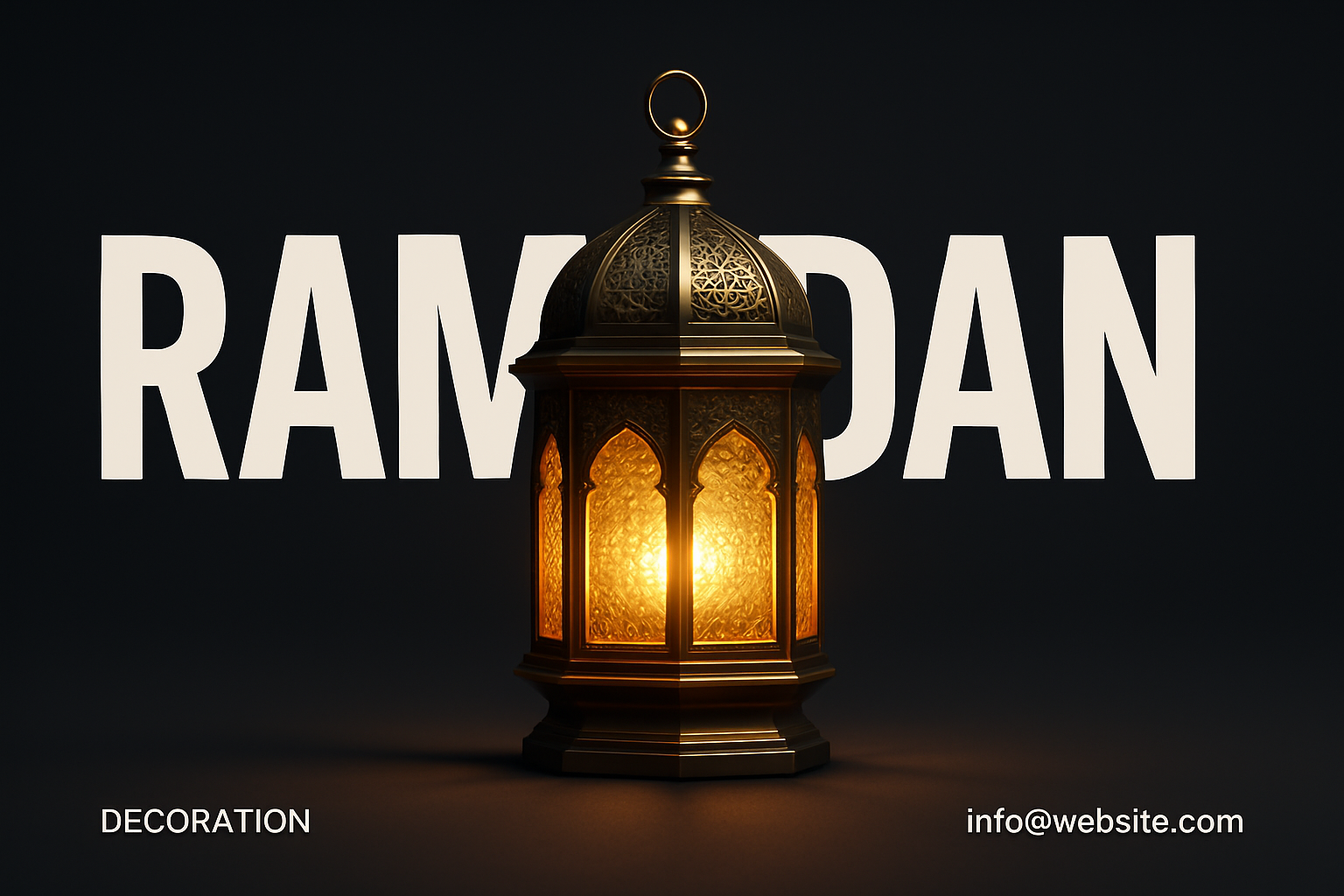 /Collection: /by davooda/Type: PNG/A beautifully rendered 3D Ramadan lantern with glowing accents against a dark gradient background. The design features bold typography, creating a modern and striking visual impact.