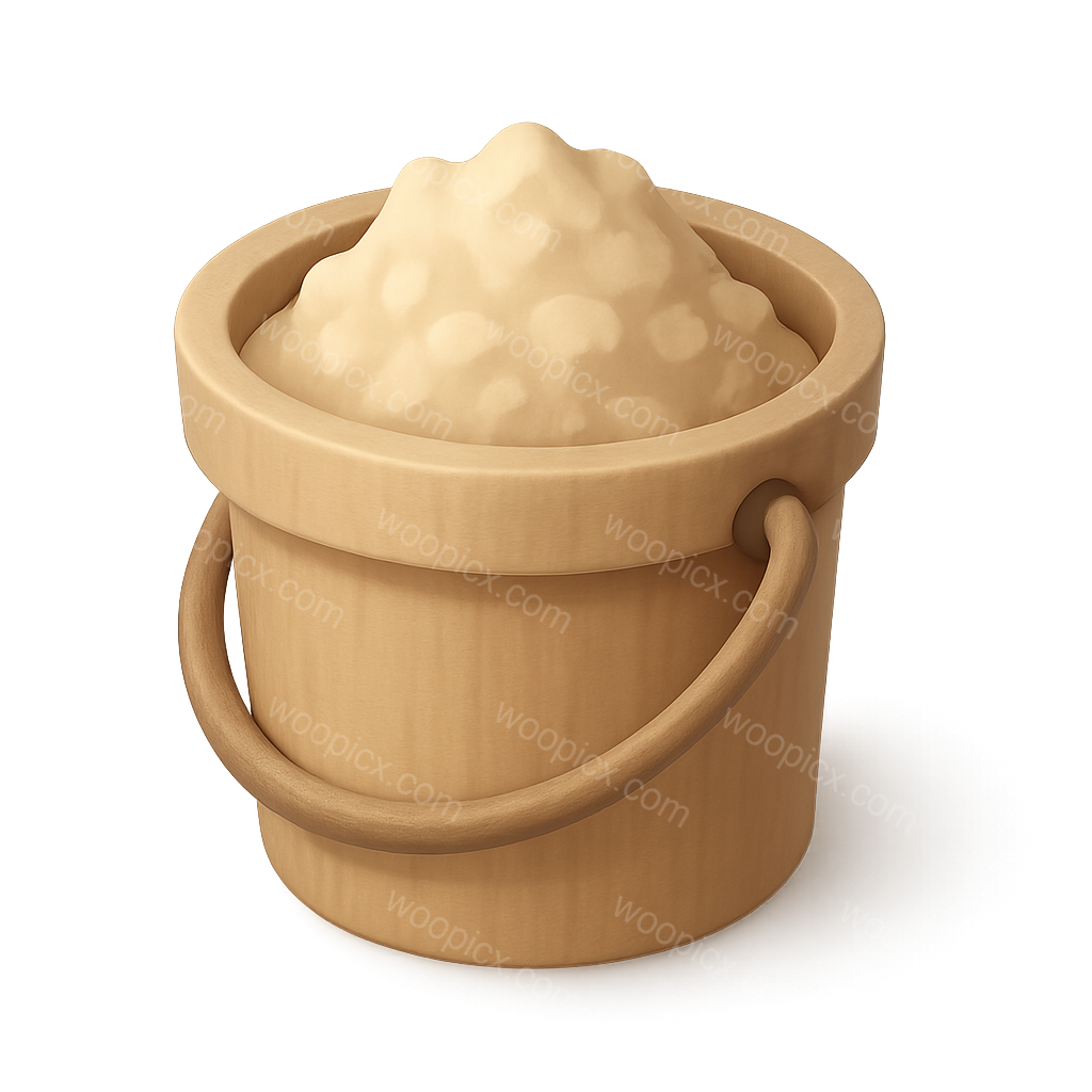 A stylized 3D representation of a bucket filled with pale pulp. The icon features a wooden texture and a volumetric design, presented in a three-quarter view with a transparent background.