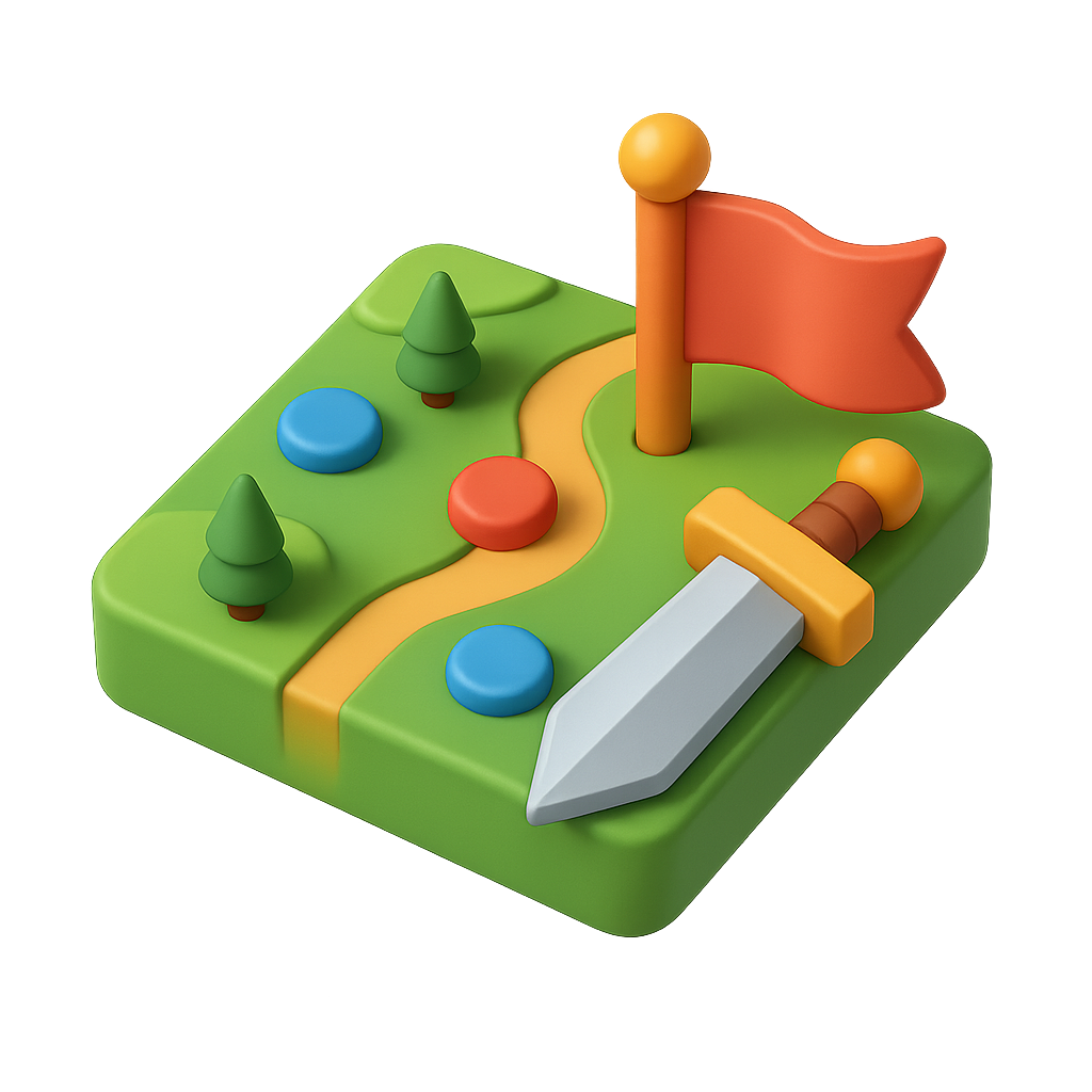 Stylized 3D MOBA Game Icon with Sword and Flag