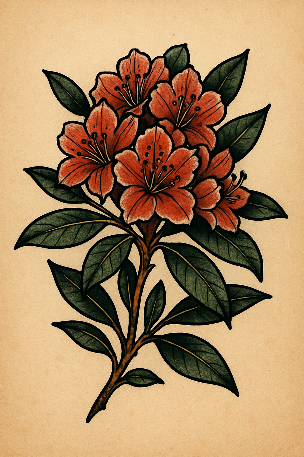/Collection: /by davooda/Type: PNG/This is a botanical illustration featuring a bouquet of vibrant flowers with detailed leaves. The vintage style and earthy tones make it suitable for art prints or decorative purposes.