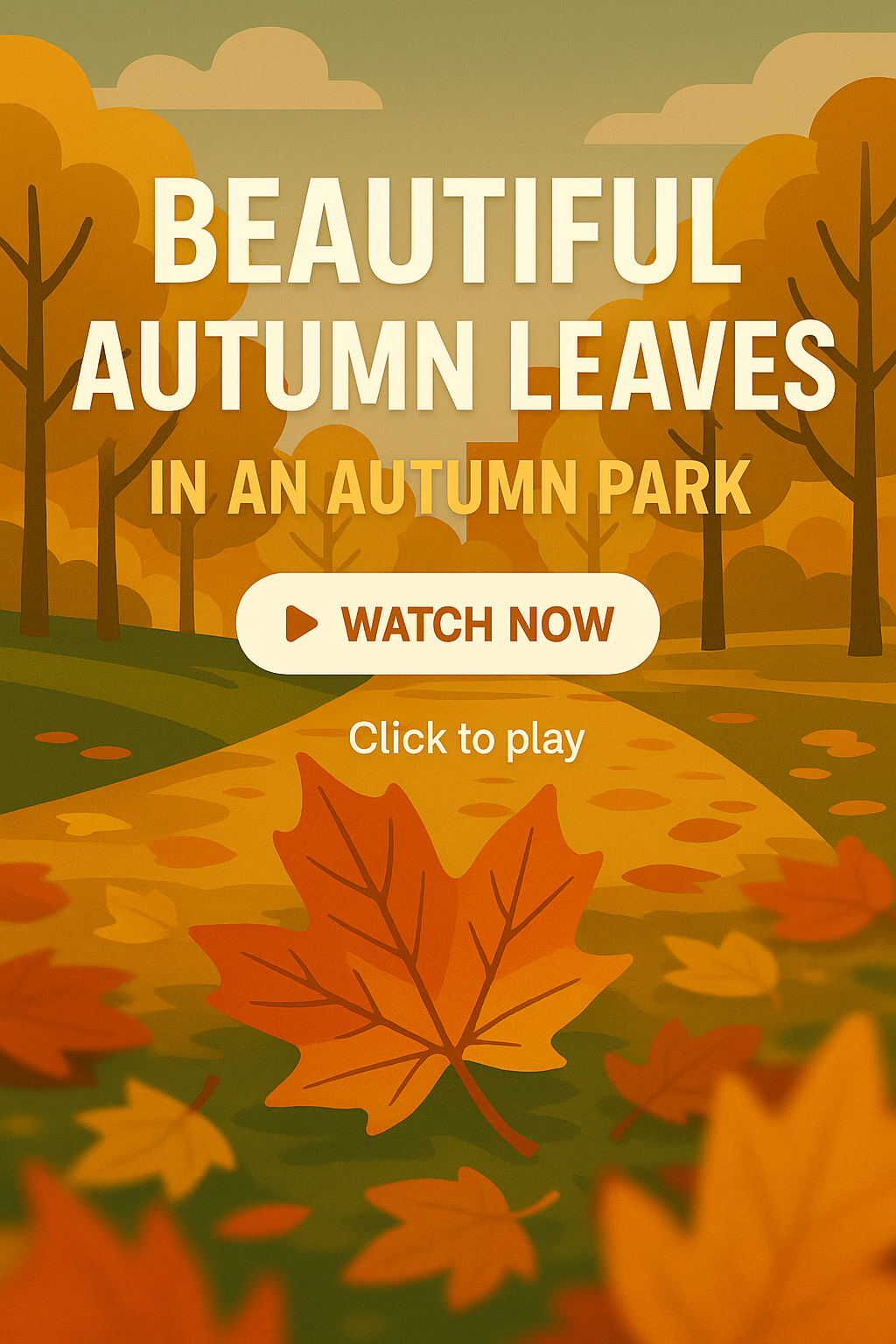 A visually appealing graphic featuring a serene autumn park scene with vibrant leaves and a prominent play button, ideal for video content promotion.