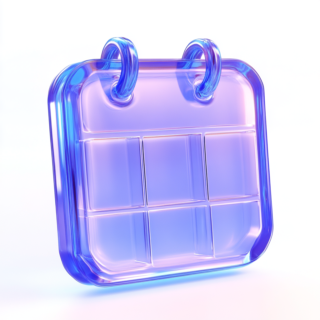 A sleek 3D calendar icon featuring a translucent design with vibrant colors. Ideal for digital applications and modern interfaces.