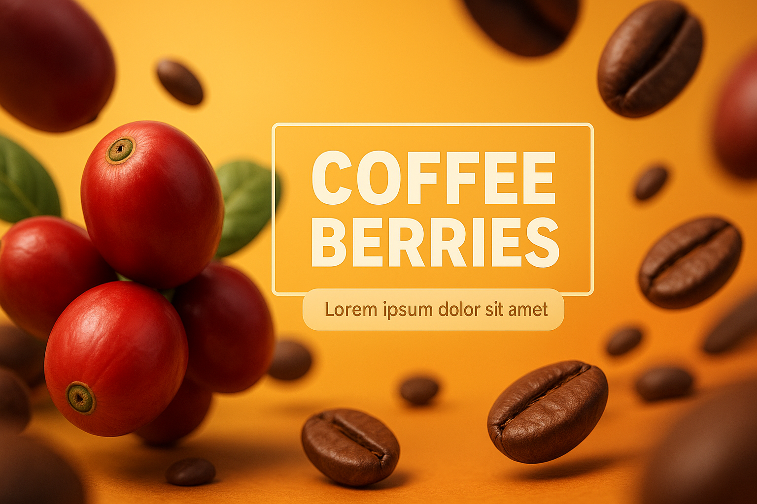 Coffee Product Promotion Featuring Coffee Beans and Berries