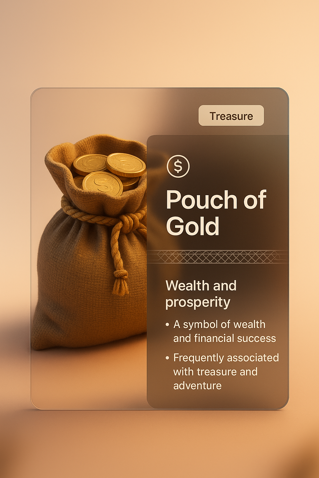 A 3D illustration of a pouch filled with gold coins, set against a smooth gradient background. Text overlay highlights themes of wealth and prosperity.