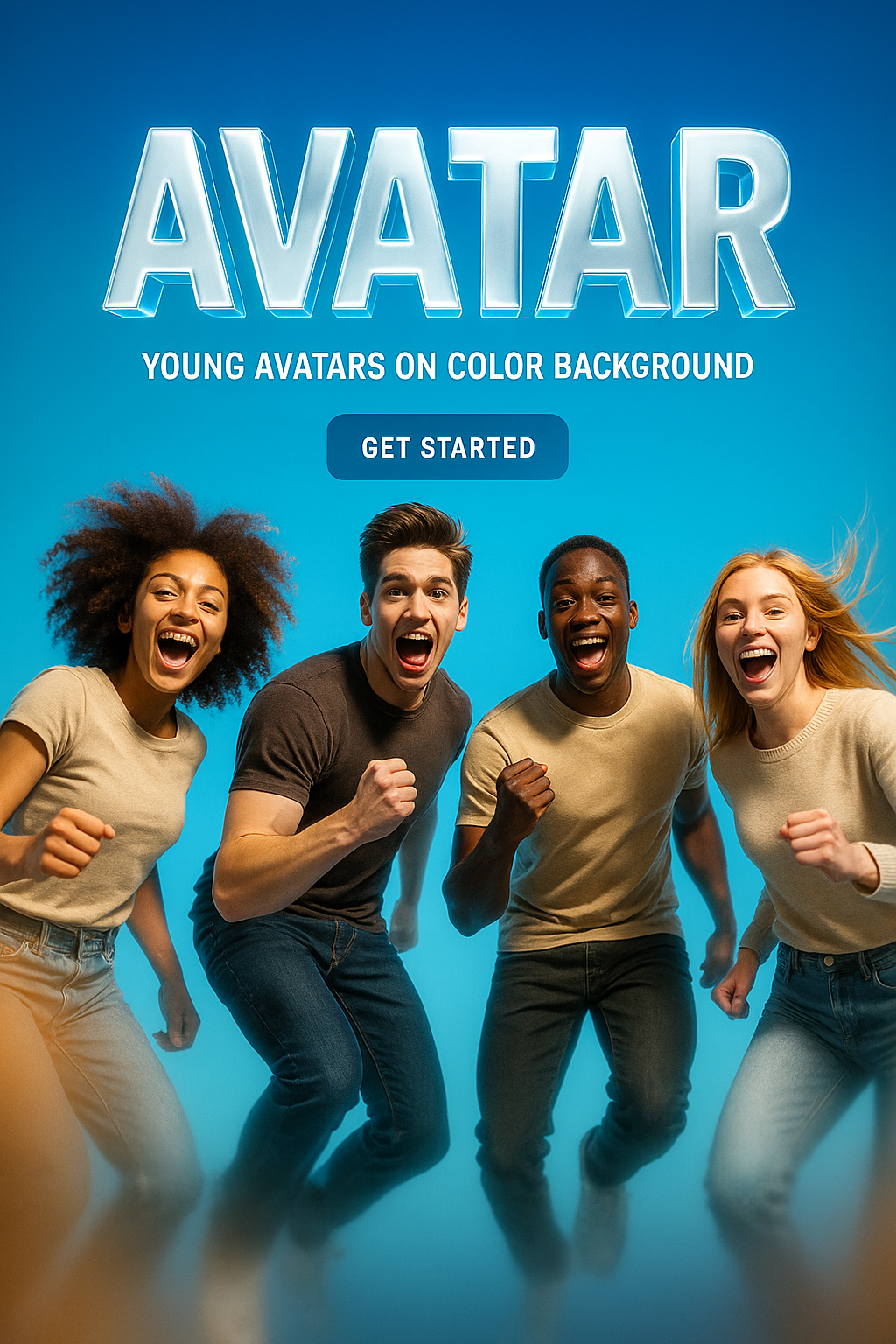 Dynamic Group of Young Avatars Celebrating on Colorful Background