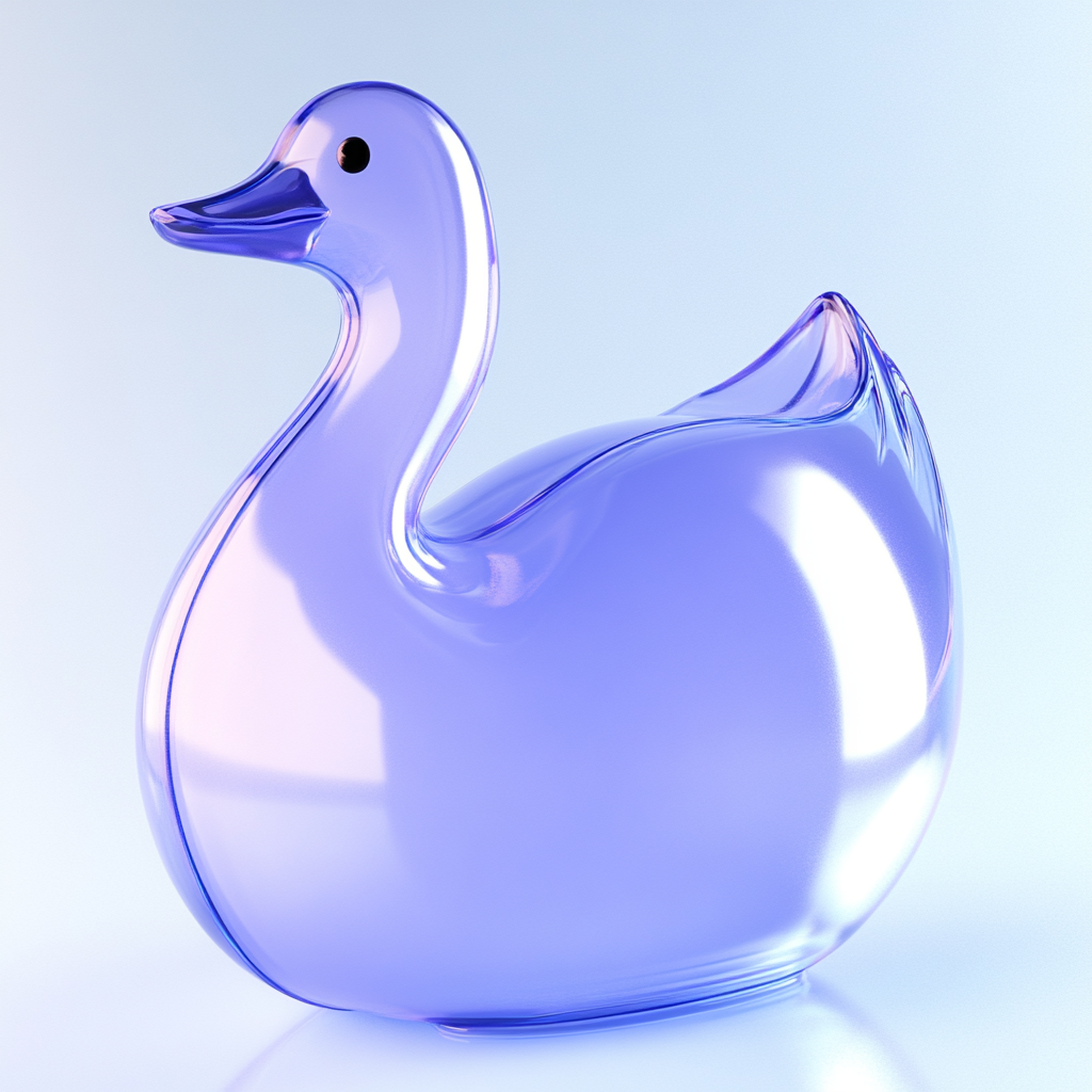 A whimsical, translucent rubber duck sculpture with a smooth, shiny surface, ideal for playful decor or artistic displays. Its unique color and design appeal to a wide audience.