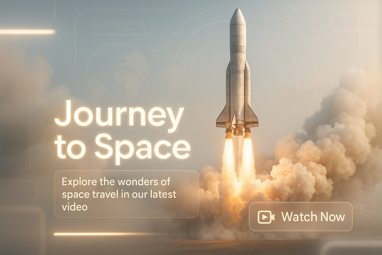 Engaging promotional image featuring a rocket launch, designed to attract viewers to a video about space travel. The modern aesthetic and clear call-to-action encourage exploration of the topic.