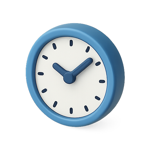 A modern 3D rendering of a clock icon featuring a blue exterior and white face. Ideal for digital applications, UI design, and time management themes.