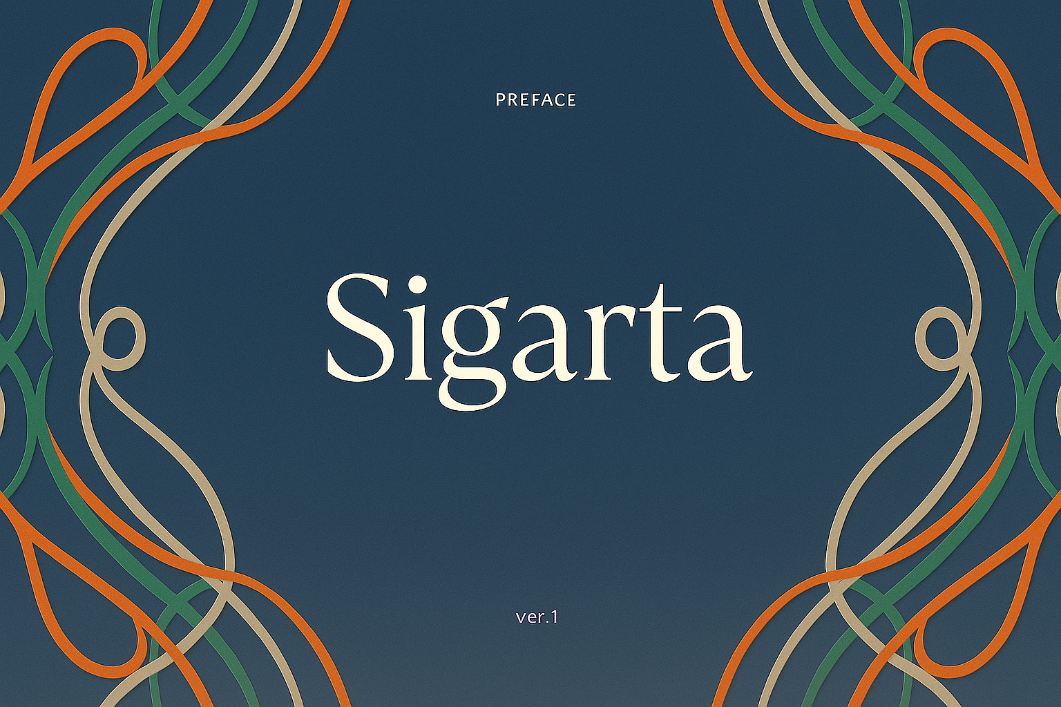 /Collection: /by davooda/Type: PNG/An artistic design featuring intricate three-color patterns surrounding elegant typography. The background is a gradient, enhancing the visual appeal of the text 'Sigarta'.