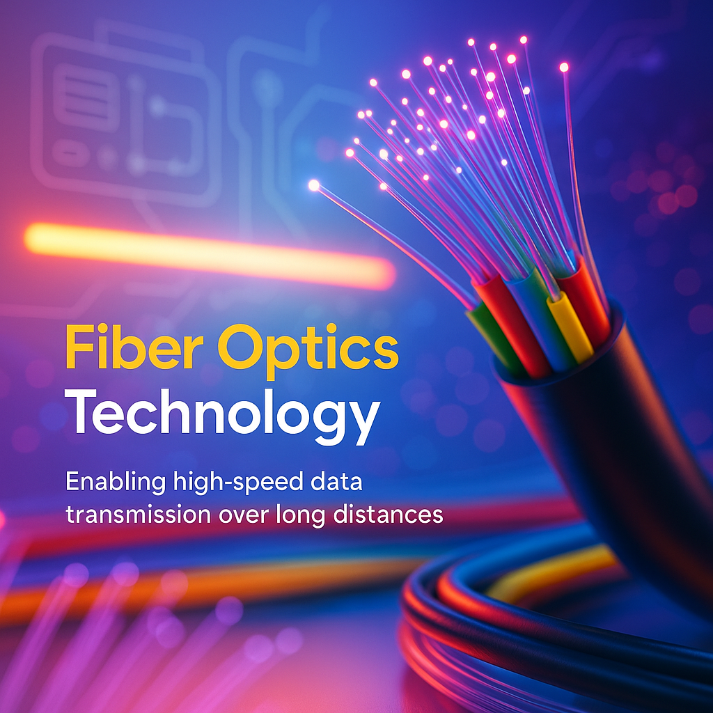 A visually striking graphic showcasing fiber optics technology, highlighting its capability for high-speed data transmission. Ideal for tech-related marketing and educational content.