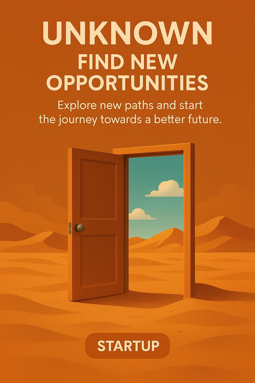/Collection: /by davooda/Type: PNG/A visually striking graphic representing new opportunities through an open door in a desert landscape, ideal for startup promotions and motivational campaigns.