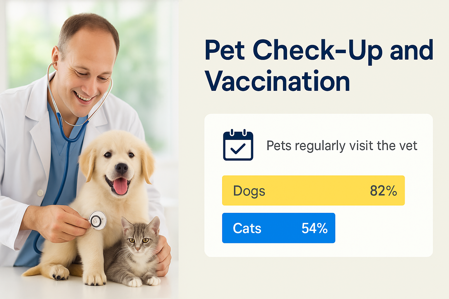 Veterinary Check-Up Promotion Featuring Pets and Statistics
