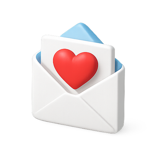 A stylized 3D graphic of an envelope containing a card with a heart symbol, ideal for conveying love or affection in digital messaging and social media.
