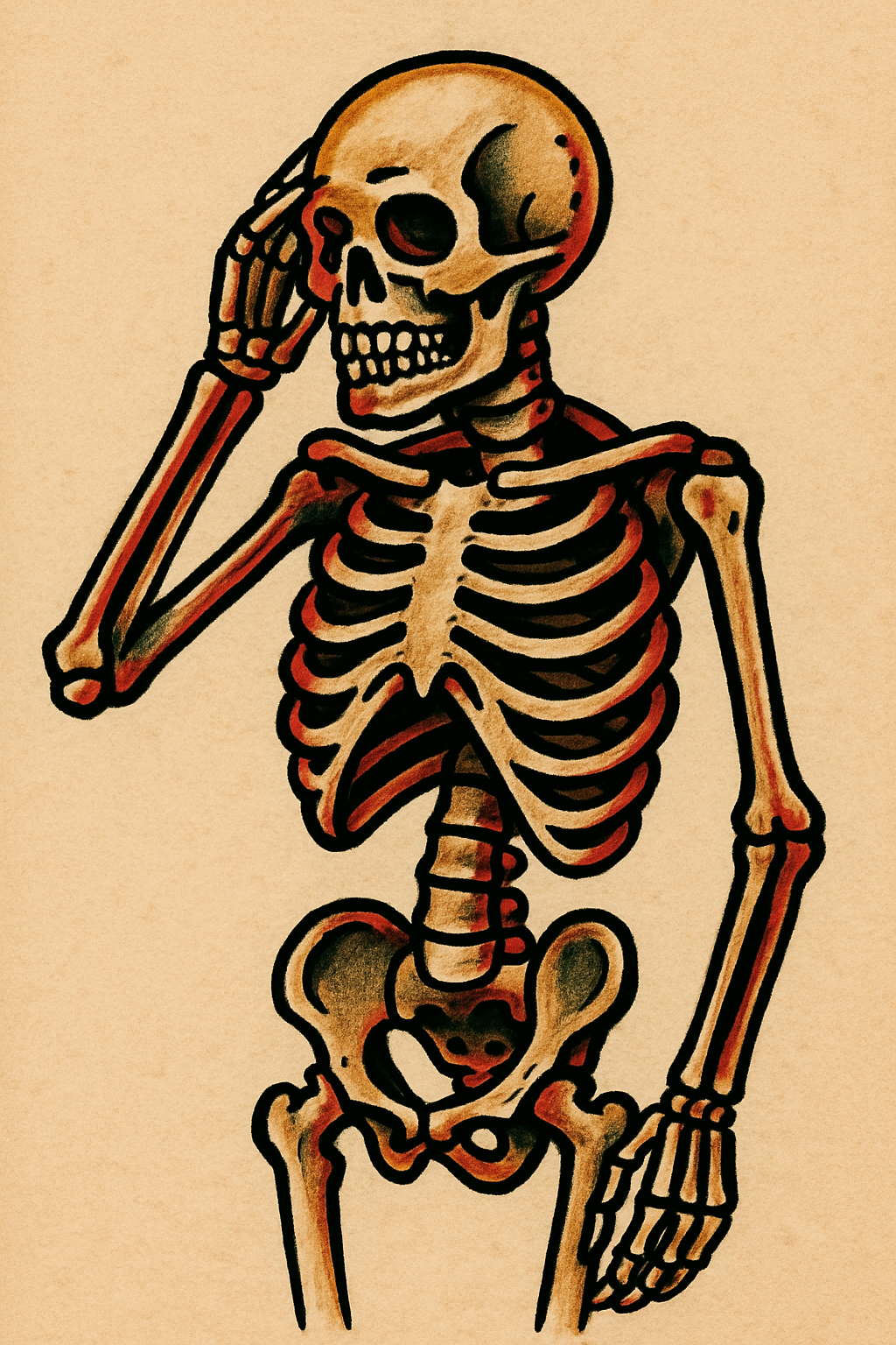 Detailed Illustration of a Skeleton in a Thoughtful Pose