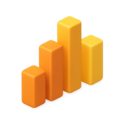 A modern 3D illustration of a bar chart in vibrant orange and yellow colors, ideal for data visualization, infographics, and presentations.