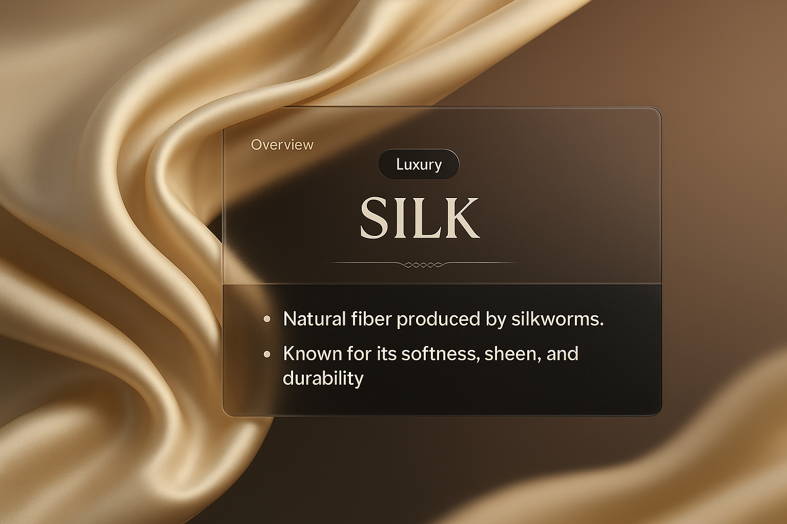 /Collection: /by davooda/Type: PNG/A sophisticated 3D illustration showcasing luxurious silk fabric, featuring an integrated information overlay about silk's qualities and uses, enhancing visual appeal.