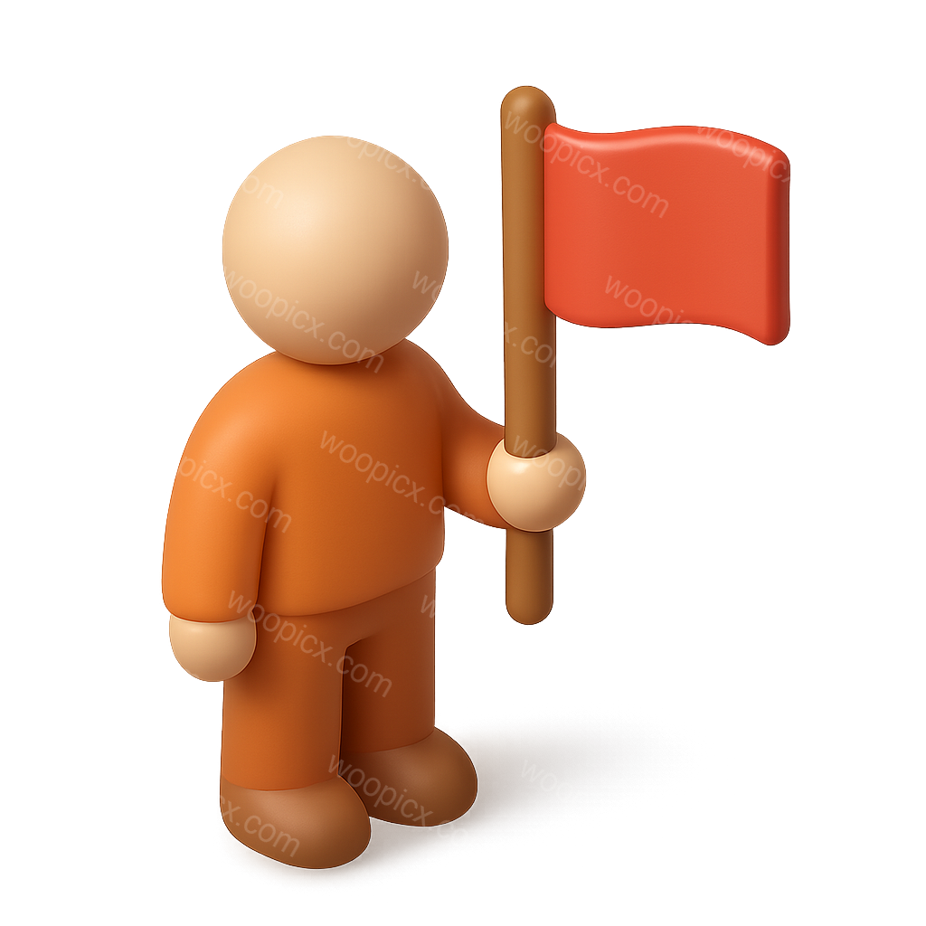 /Premium/Collection: /by davooda/Type: PNG/A stylized 3D icon depicting a person holding a red flag. The figure has a smooth, rounded appearance with an orange outfit and a simplistic design, set against a soft gradient background.