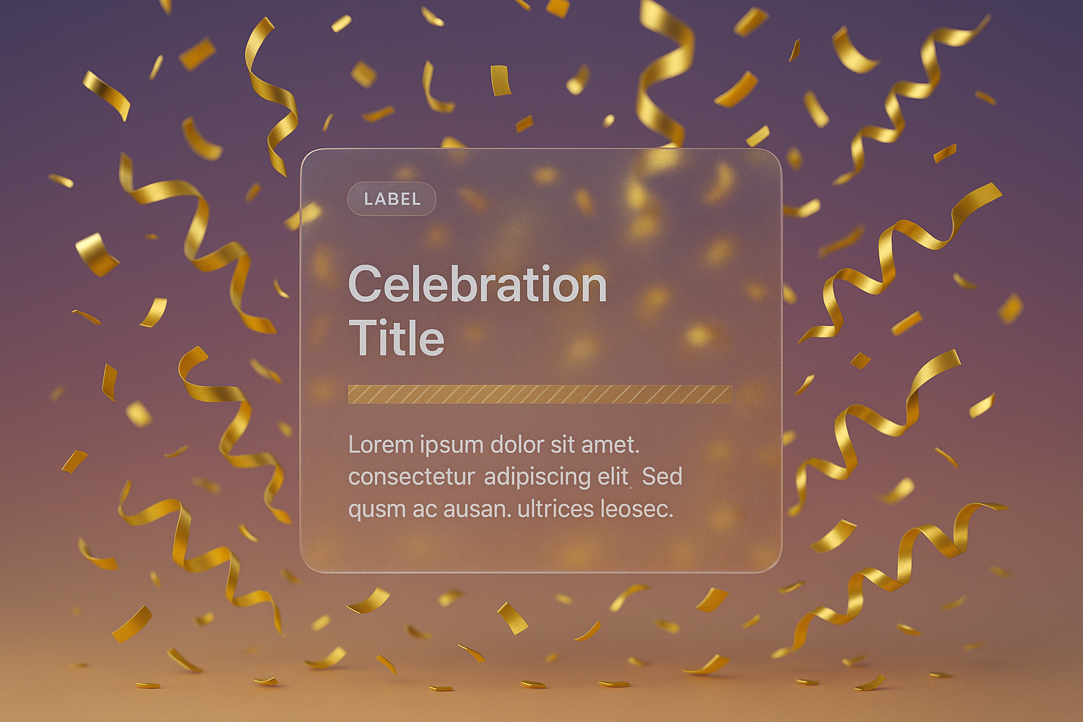 /Collection: /by davooda/Type: PNG/A festive design featuring falling shiny gold confetti and ribbons on a smooth gradient background. It includes a transparent block with a title, label, and decorative elements, creating a celebratory vibe.