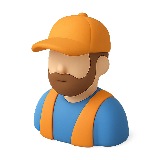 A vibrant 3D character illustration featuring a construction worker in a cap and safety vest, ideal for construction-themed projects and digital applications.