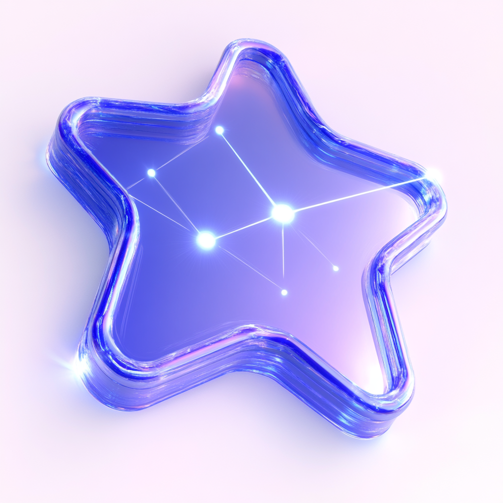 A visually striking star-shaped graphic with a translucent design and cosmic connections, ideal for digital art or branding in creative industries.