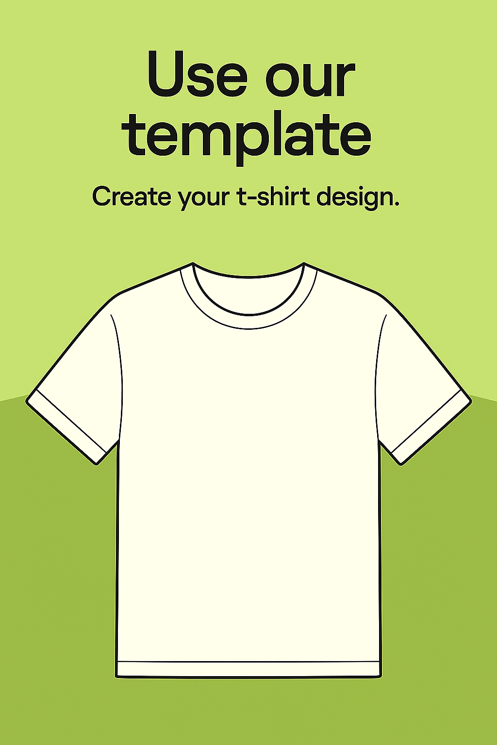 Minimalist t-shirt design template on a vibrant green background, inviting users to create custom designs. Suitable for fashion brands and DIY enthusiasts.