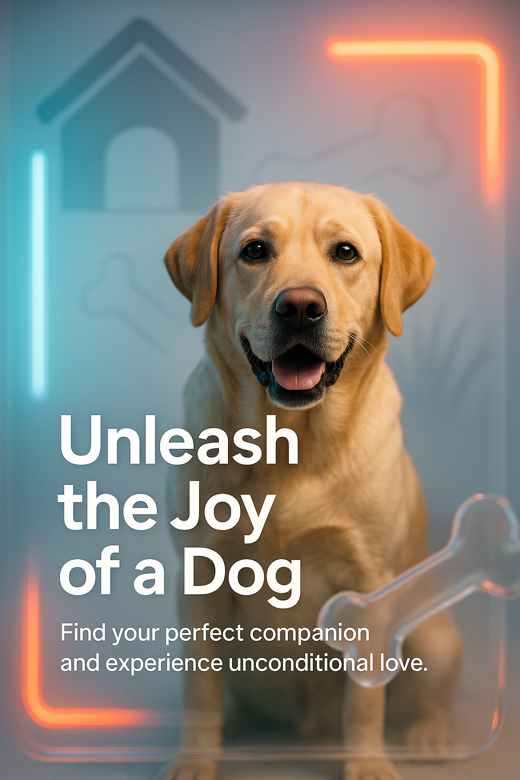 /Collection: /by davooda/Type: PNG/A visually appealing promotional image showcasing a cheerful Labrador Retriever, designed to attract potential dog adopters. The modern style and vibrant colors enhance emotional appeal.