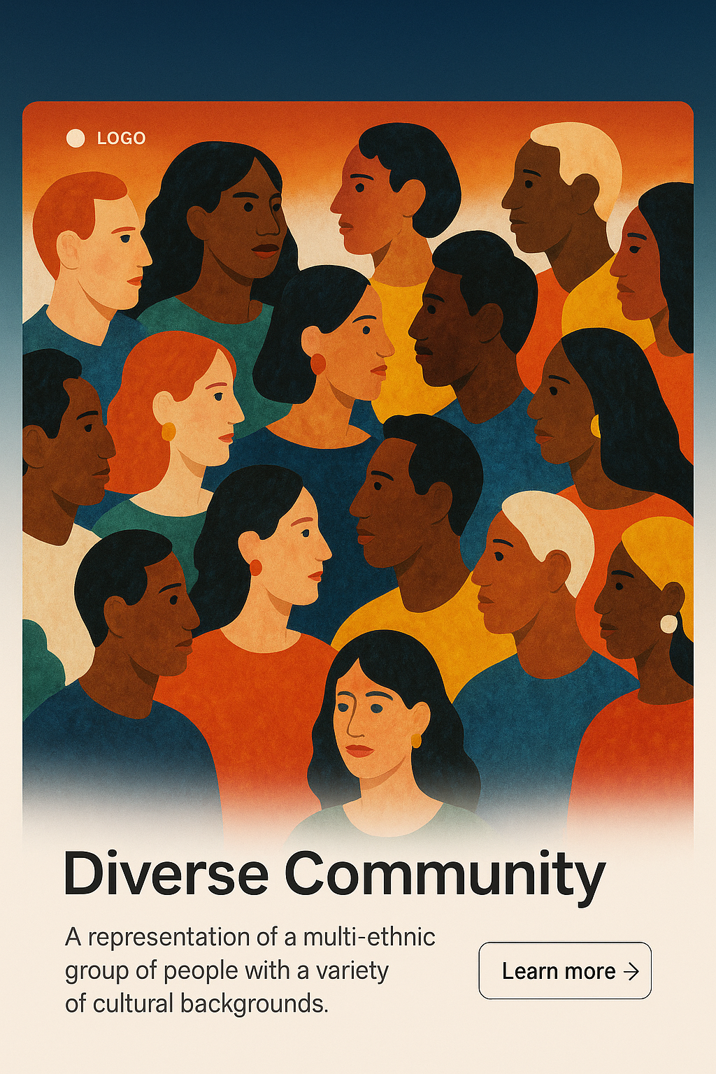 /Collection: /by davooda/Type: PNG/An abstract art illustration featuring a colorful crowd of diverse individuals, showcasing a multi-ethnic group with varied cultural backgrounds, set against a gradient background.