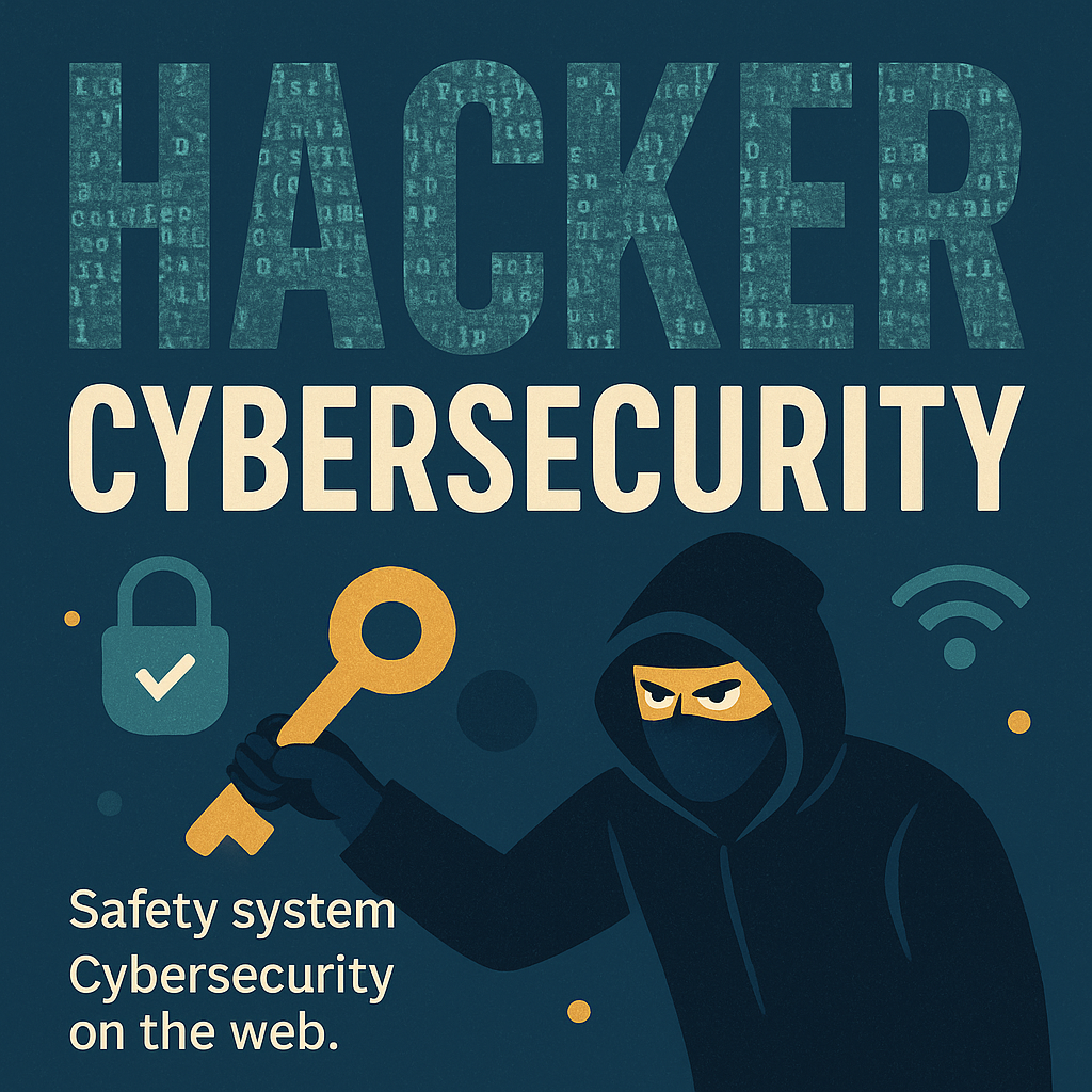 /Collection: /by davooda/Type: PNG/Illustrative graphic representing cybersecurity themes, featuring a hacker character and security symbols. Suitable for educational content or awareness campaigns about online safety.