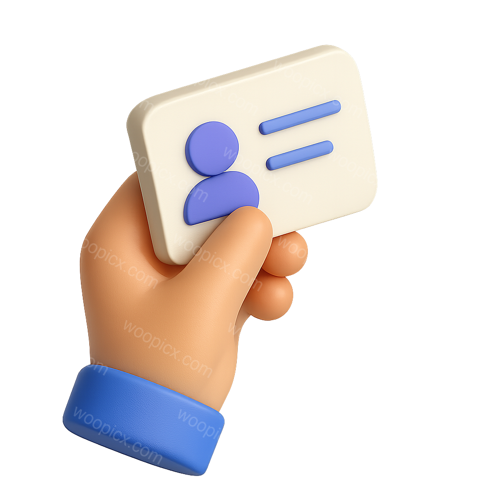 /Premium/Collection: /by davooda/Type: PNG/A stylized 3D rendering of a hand grasping a card, presented in a three-quarter view. The hand features a soft, cartoonish style, while the card has simple design elements, all set against a smooth, dark background for contrast.