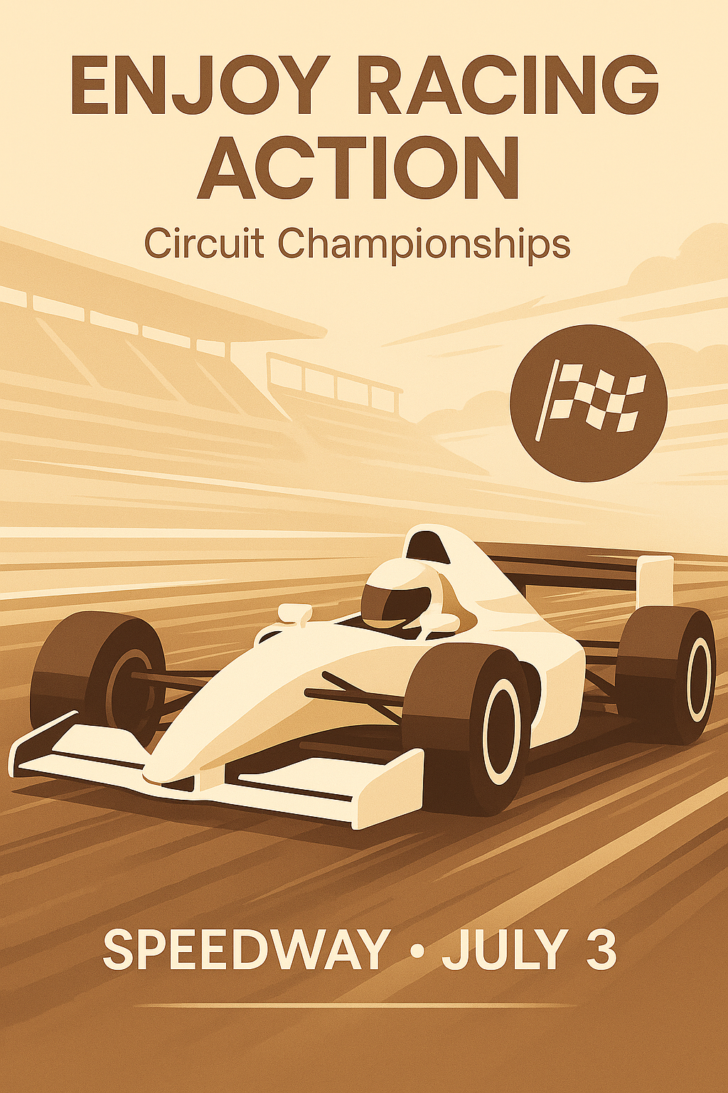 Vintage Racing Event Poster Featuring Race Car Illustration