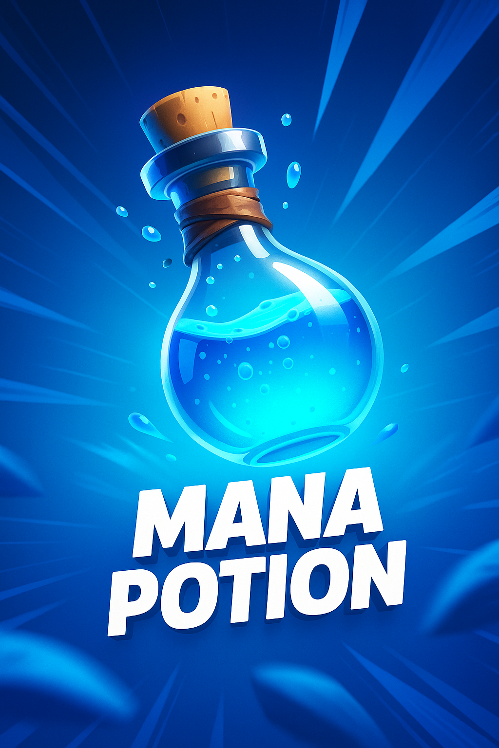 /Collection: /by davooda/Type: PNG/A vibrant illustration of a mana potion in a dynamic setting, featuring a blue gradient background and energetic lines radiating from the bottle, enhancing its magical essence.
