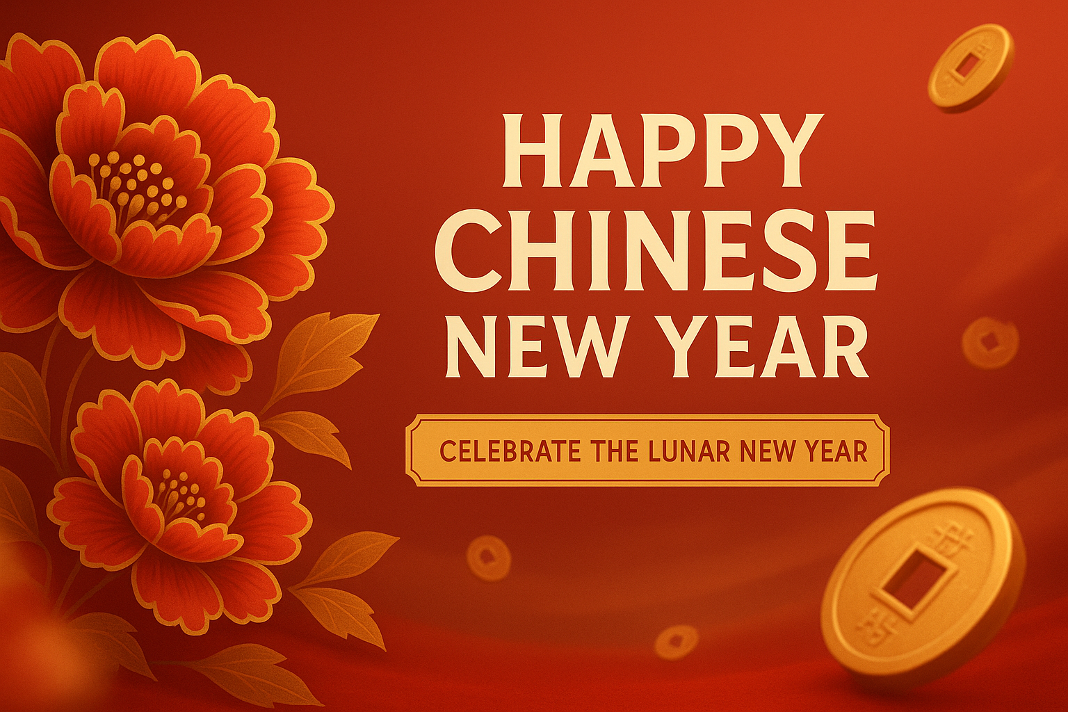 Festive Chinese New Year Banner with Coins and Flowers