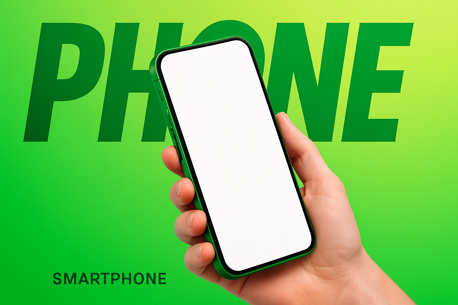 Dynamic Presentation of a Green Smartphone with Bold Typography