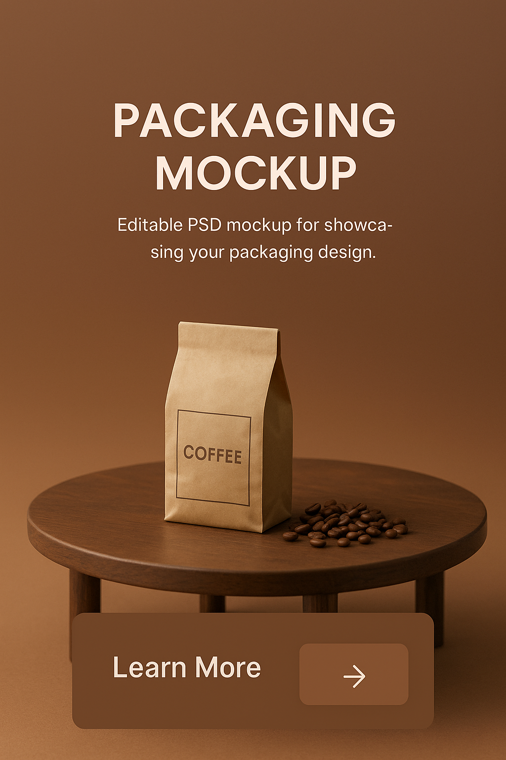 Realistic Coffee Bag Packaging Mockup with Beans on Table