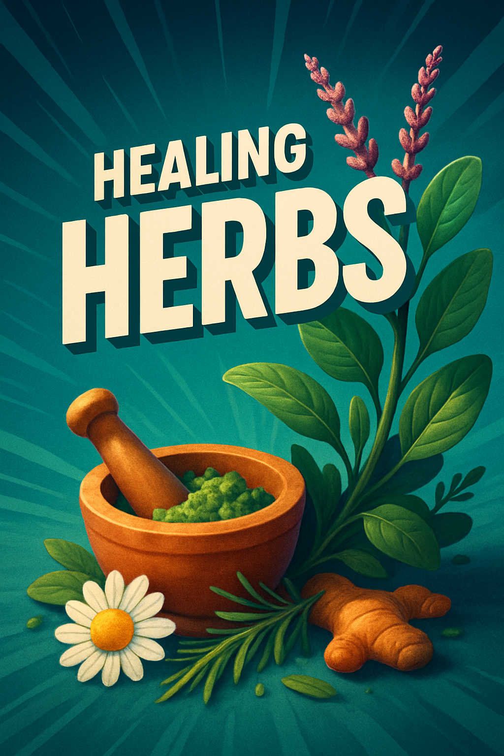 Dynamic Illustration of Healing Herbs with Mortar and Pestle