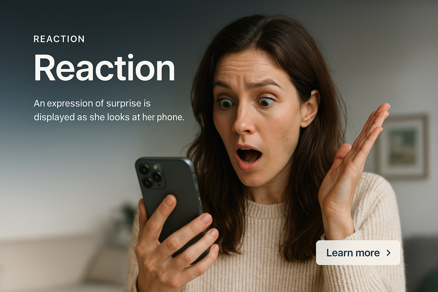 /Collection: /by davooda/Type: PNG/A modern web page layout featuring a surprised woman looking at her phone, with clean typography and a clear call-to-action button. The design includes a gradient background and cohesive elements.
