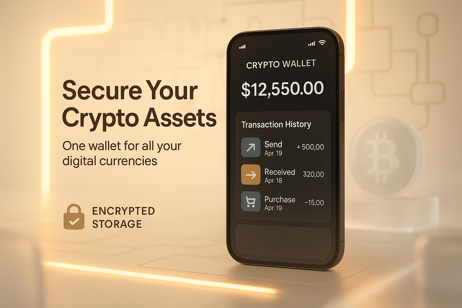 Promotional Graphic for Crypto Wallet App with Modern Design