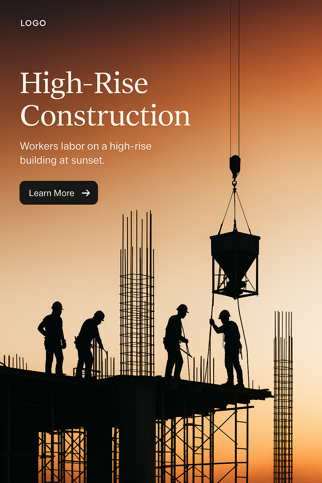 Silhouette of Construction Workers at Sunset on High-Rise Building