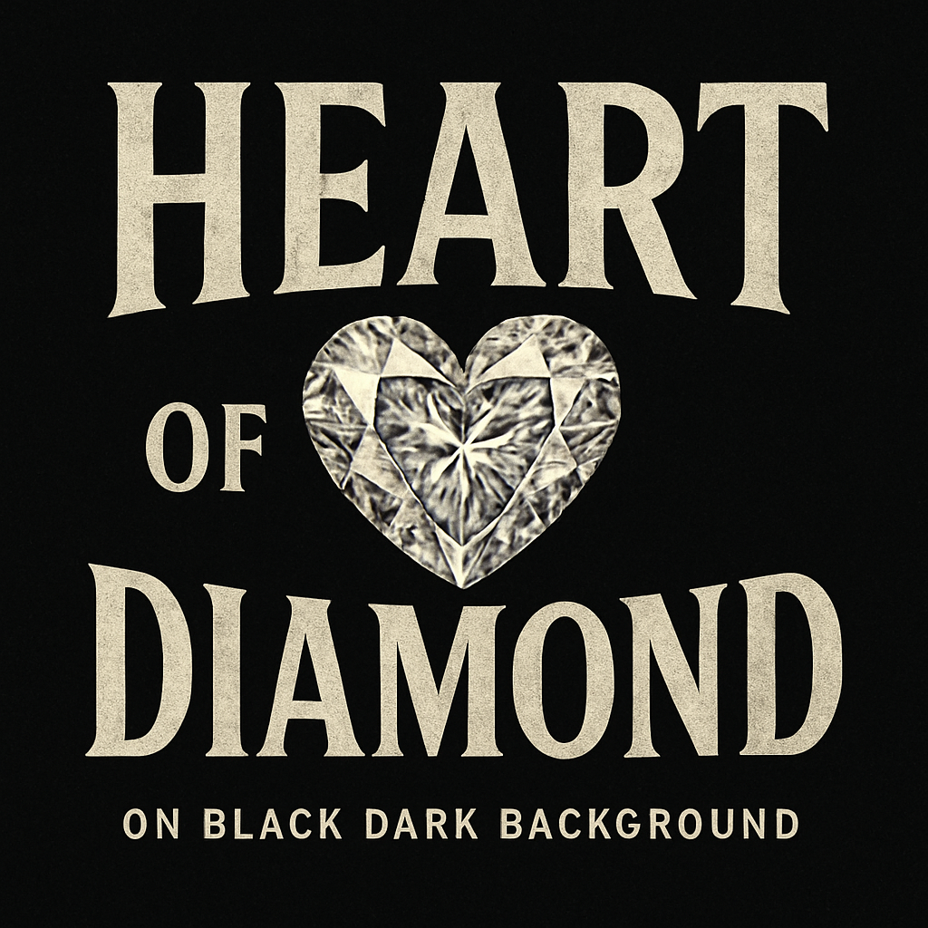 This image showcases a heart-shaped diamond graphic with bold typography on a dark background. Ideal for jewelry marketing or luxury branding.