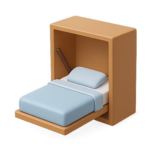 A minimalist 3D representation of a bed featuring soft colors and simple shapes, ideal for digital design projects, apps, or web interfaces.