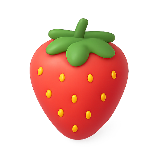 A vibrant 3D rendered strawberry character featuring a playful design. Ideal for use in children's media, apps, or playful branding.