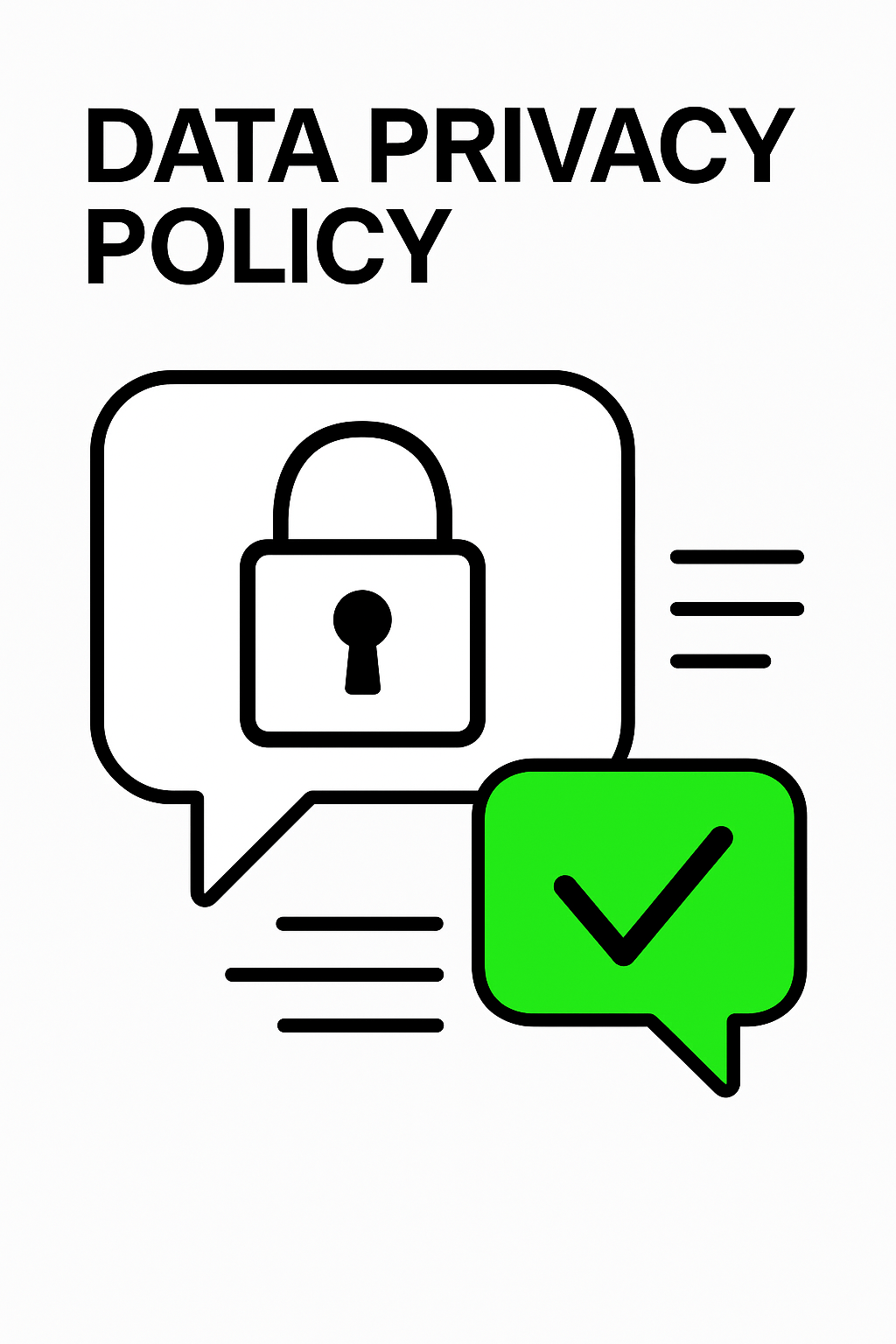 Minimalistic graphic representing a data privacy policy featuring a lock icon and a checkmark, ideal for digital privacy communications.