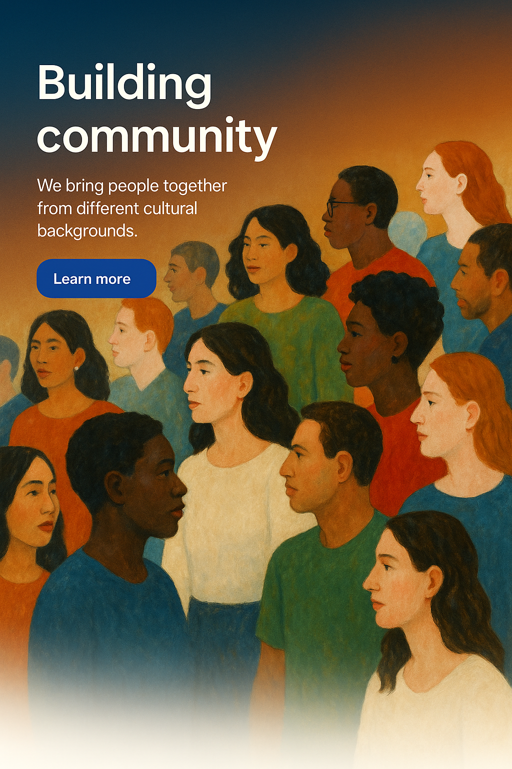 /Collection: /by davooda/Type: PNG/An abstract illustration showcasing a diverse group of people with various cultural backgrounds. The artwork emphasizes unity and community, framed in a warm color palette.