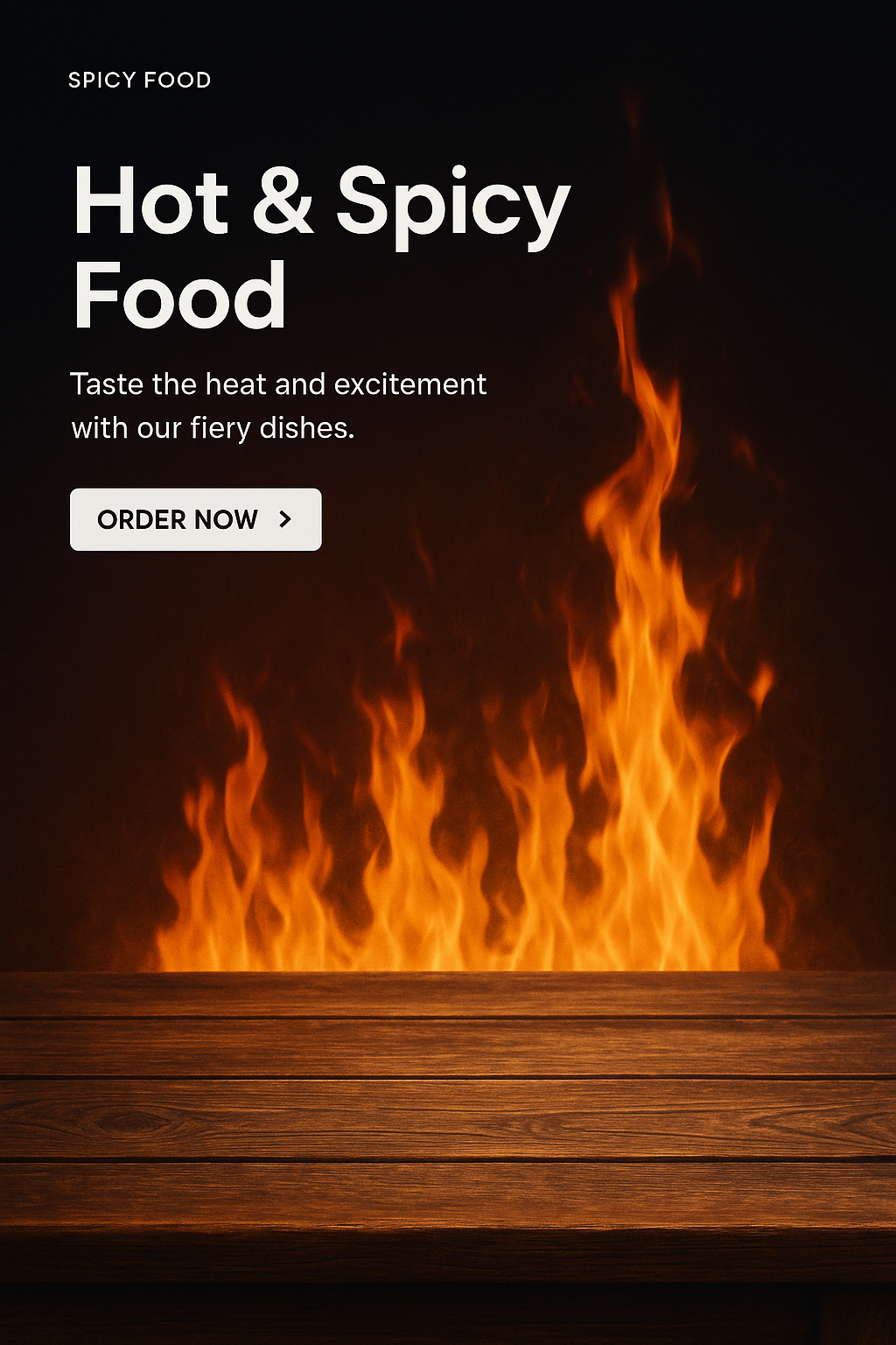 Stylish Promotion for Hot and Spicy Food on Wooden Table